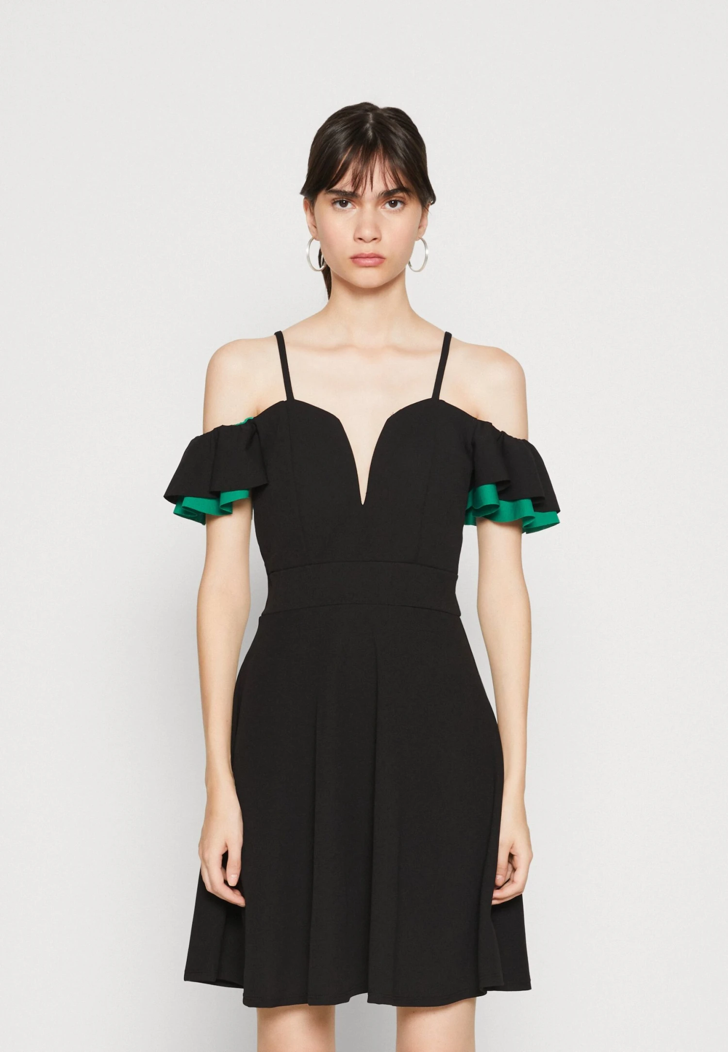 Wal G Lassy Ruffle Mini – Cocktailjurk – Black/Leaf Green